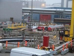 Københavns Energis største anlægsprojekt nogensinde. En 4 km lang tunnel 25-40 meter under jorden fra Amagerværket til Fredensgade på Nørrebro. L&H-Rørbyg A/S skal montere 3 sæt fjernvarmerør og det foregår fra skakterne ved Amagerværket og i Fredensgade. Her lægges stålrørene op på rullelejer som Cobalch ApS har leveret og skubbes længere ind i tunnelen, efterhånden som de bliver svejset sammen.